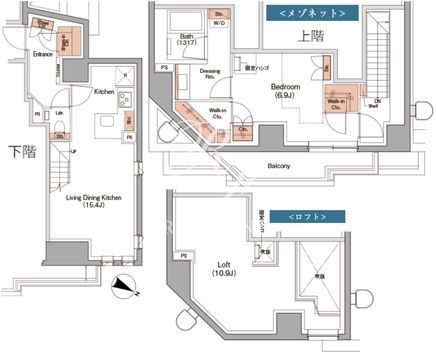 所在階/向き | 5階/北東 | 間取り | 1LDK+WIC+WIC+ロフト |