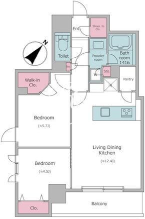 平米数 | 54.56m2 | 部屋詳細 | LDK12.4帖/洋室5.7帖/洋室4.5帖 |