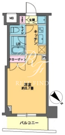平米数 | 24.67m2 | 部屋詳細 | 洋室8.7帖/K2帖 |